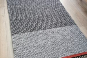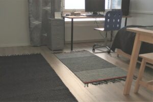 Opiskelijan toiveissa oli alun perin valkomustat siksak-kuvioiset matot, mutta hänpä tuli mallitilkun nähtyään erilaisiin ajatuksiin. Harmaata ja mustaa täytyi sittenkin olla.